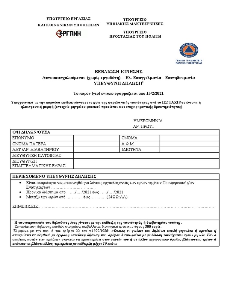 δηλωση Rapid Test εργαζομενου εργανη 2021 / Ta Nea Entypa Metakinhshs Apo 15 2 2021 Metabatikh Periodos Ews To Prwi Ths Tetarths 17 Febroyarioy